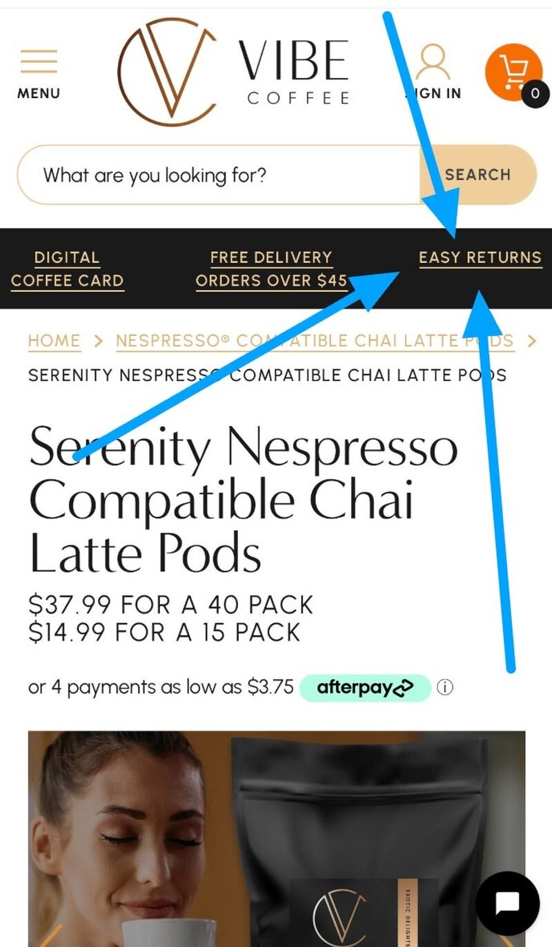 The best place to feature returns content is across the site (header, footer), but the two most impactful locations on a retail website are the Product Detail page and the Shopping Cart page.