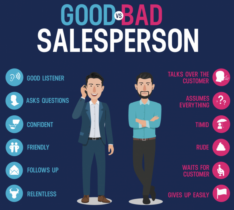 With all the above in mind, consider the traits of a good salesperson vs a bad one.